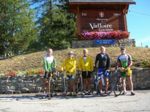 La pedalata inizia alla base della salita che porta al col du Telegraphe, in una giornata di sole ma con una temperatura insolitamente bassa, se si considera che siamo a fine Luglio. La pendenza si sente subito sulle gambe ancora fredde, questo però contribuisce a tenere il gruppo compatto e si sale tra una battuta e l’altra e con le parole di meraviglia e soddisfazione di Pino F. che non risparmia complimenti per il paesaggio e la strada, che si sviluppa sull’erta montagna. Questo clima festoso fa si che la prima asperità venga da me superata con discreta facilità, naturalmente gli altri non si accorgono neanche di averla percorsa.