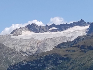 Partiamo in 5 e giù subito in discesa.. a freddo ( in tutti i sensi) verso i 1449mt di Lanslevillard; da qui comincia la prima salitina della Madeleine 1746m che ci apre le porte alla fantastica valle verso la meta finale. Gli ultimi 14 km sono quelli che “contano” e la fatica è stemperata dal panorama mozzafiato tra ghiacciai e prati immacolati che si possono ammirare tra un tornante e l’altro.