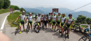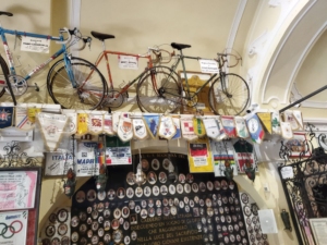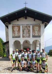 Alla spicciolata siamo arrivati alla meta consapevoli ma anche incuriositi. Infatti devo dire che nessuno di noi si aspettava il santuario così ricco di foto, bici e cimeli dei grandi del passato: Coppi, Bartali, Moser, Casartelli solo per citarne alcuni….. Anche il panorama dalla terrazza verso il Lago è stato veramente fantastico.