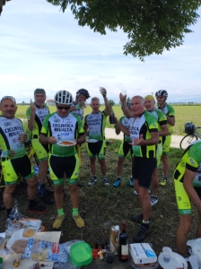 Sulla ciclabile per Moretta, in quel di “Al Casel Scalenghe” si è svolto il picnic anche se è riduttivo chiamarlo così visto il menù offerto dai ciclisti , ma sopratutto dalla famiglia che ringraziamo per le prelibatezze ed il buon vino che ci ha permesso di trascorrere in allegria la giornata come avrebbe voluto Ricu, le lacrime le abbiamo già versate in precedenza.