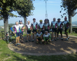 La sosta che segue serve, oltre che a riprendere fiato, anche a far capire a tutti chi è che guida il gruppo, infatti la tendenza all’anarchia che da Superga serpeggia tra i ciclisti avrebbe portato inevitabilmente a dividere il gruppo in ….tanti piccoli gruppetti di 2 o 3 componenti, ma giustamente ci pensa Sergio a riportare l’ordine tra le fila. Finalmente quando tutti dimostrano di aver capito quale è la “filosofia del gruppo” si riparte in direzione di Sciolze percorrendo una salita che è tutt’altro che dolce, ma diciamolo pure… “noi” abbiamo visto di peggio e così superata anche questa asperità ci tuffiamo a rotta di collo in discesa attraversando i paesini di Marentino, Arenzano fino alle porte di Chieri dove, a causa dell’ora, i nostri compagni di viaggio Loris e Francesco ci lasciano indicandoci la strada per raggiungere facilmente Santena.